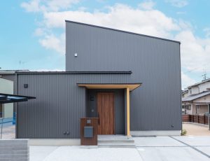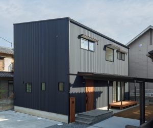 ブラックのガルバリウム鋼板外壁は、重厚感と高級感が出やすいカラーです。
