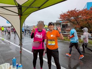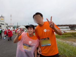齋藤さんは、残念ながら抽選に外れてしまったため、今回はエイドで一緒に応援しました!