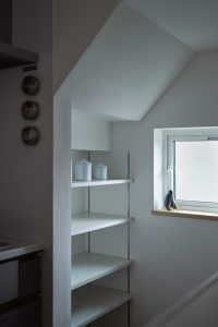 食品を収納するパントリーでは、湿気がこもりにくい換気設備が必要です。また、暗いと整理がしにくいため、棚全体を照らせる照明を設置することが大切です。