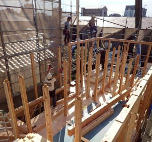 大工さんたちの抜群のチームワークで工事がどんどん進んでいきます。