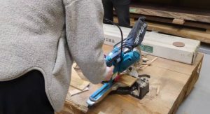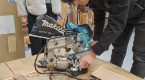 先日、大工さんに「卓上スライドまるのこ」や「ベルトディスクサンダー」の使い方を教えていただきました。