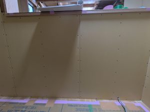 左官の方々がボードのビス部分を丁寧にパテ処理していたり、漆喰が木部に付かないように細かい部分まで養生していたりと繊細な仕事を間近で見ることができました。