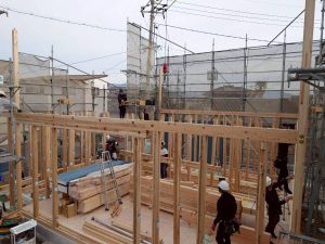 大工さんたちの抜群のチームワークでどんどん工事が進んでいきます。