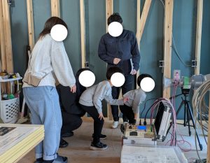 気密測定士さんから測定についての説明をしていただき、測定スタート!