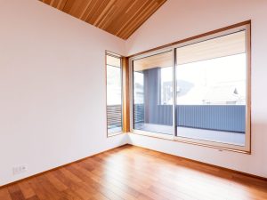 床材には、2階全体にチーク材を採用しました。