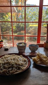 緑の屋根が目印の古民家で趣のあるお蕎麦屋さんです。