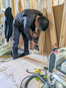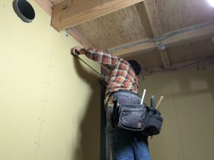 2つ目の現場では壁のボード張りをしていました。