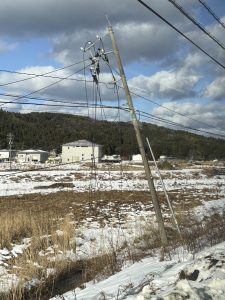 現地では、電柱が大きく傾いていたり、建物が傾いていたり、壁に大きなひび割れが入っていたりと、地震の衝撃の大きさがそのまま残っていました。