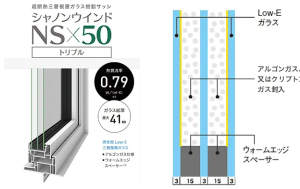 SANKOの家では、国内最高クラスの断熱性能を誇るエクセルシャノンの「シャノンウィンドNS50」を標準採用しています。
