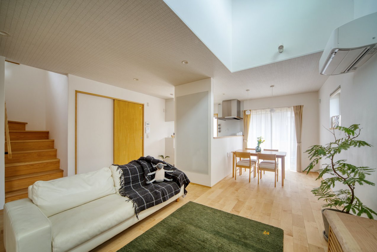 家族と過ごすリビング、ダイニングは全て南側に向いていたり、階段を中心にしたプランニングとなっています。
