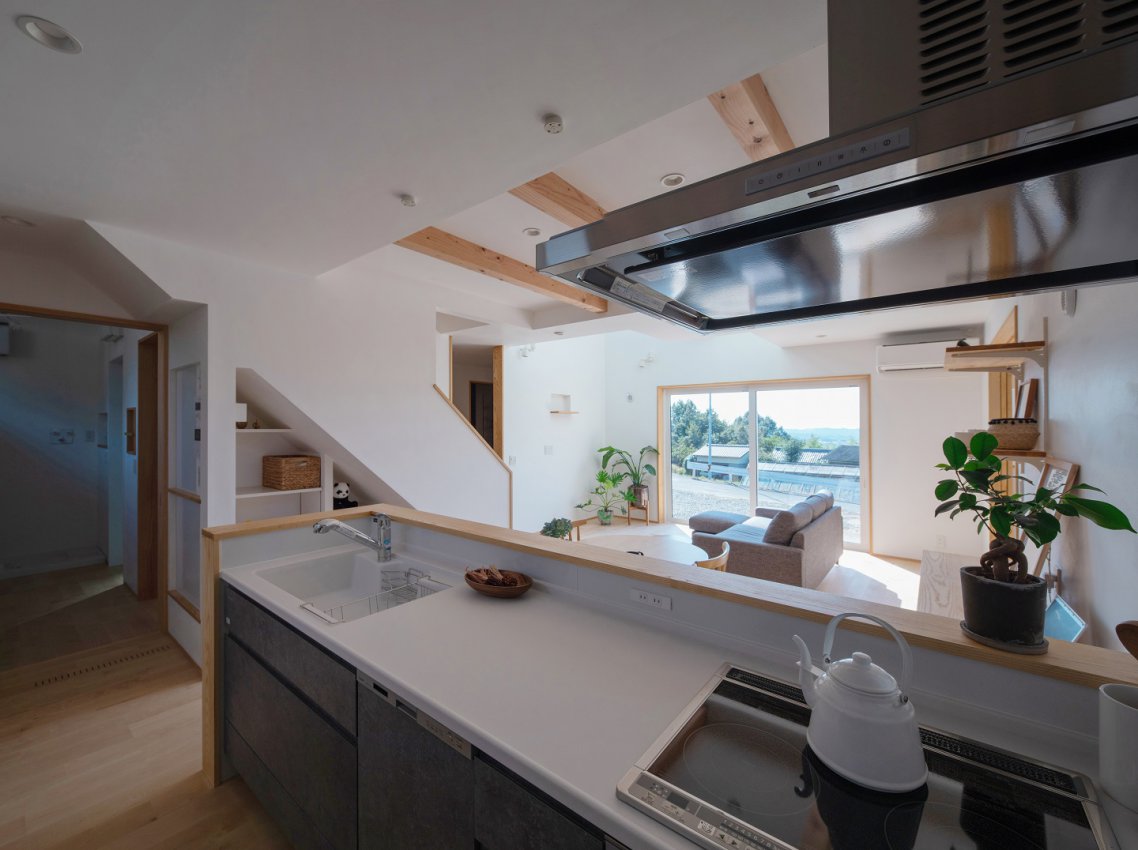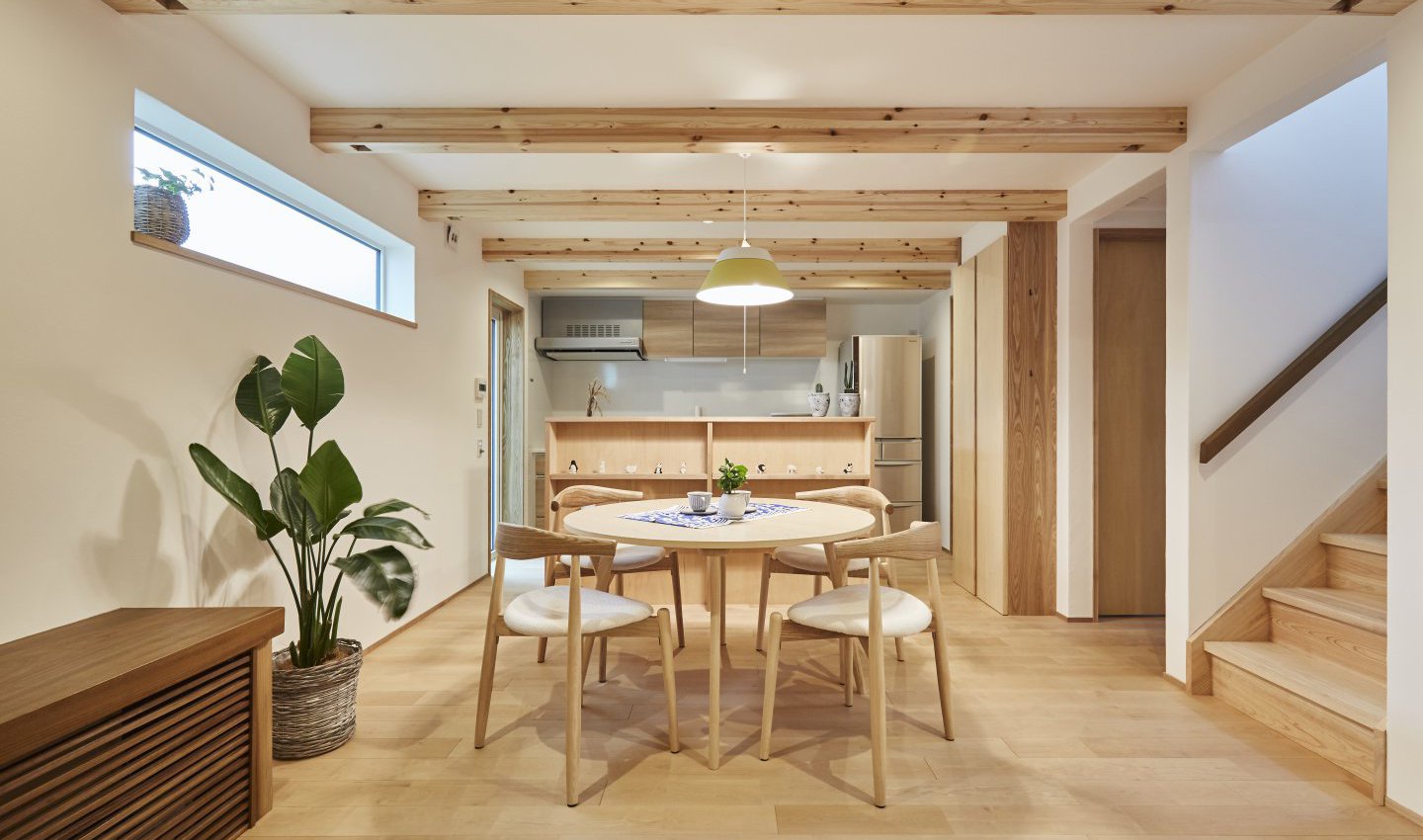 キッチンダイニングからリビングまでを直線的かつ開放的な空間設計をすることによりご家族の動向がわかるような空間設計が人気です。さらに家族の暮らしを楽にする家事ラク動線も取り入れているため、子育て家族の暮らしやすさを追求した住まいになりました。