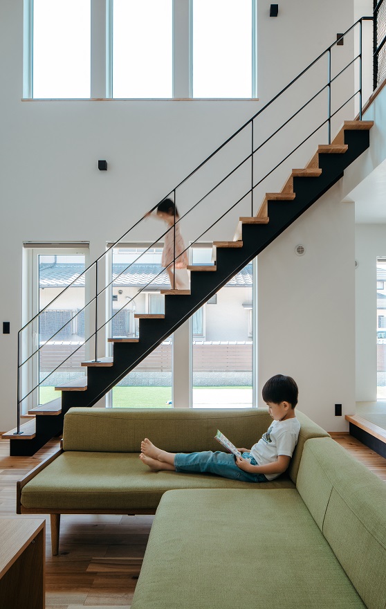 吹き抜け階段があることで、広々とした空間をつくることができます。そのため、多くの光を取り入れることができ、通気性も優れています。また、家族間のコミュニケーションも活発になります。