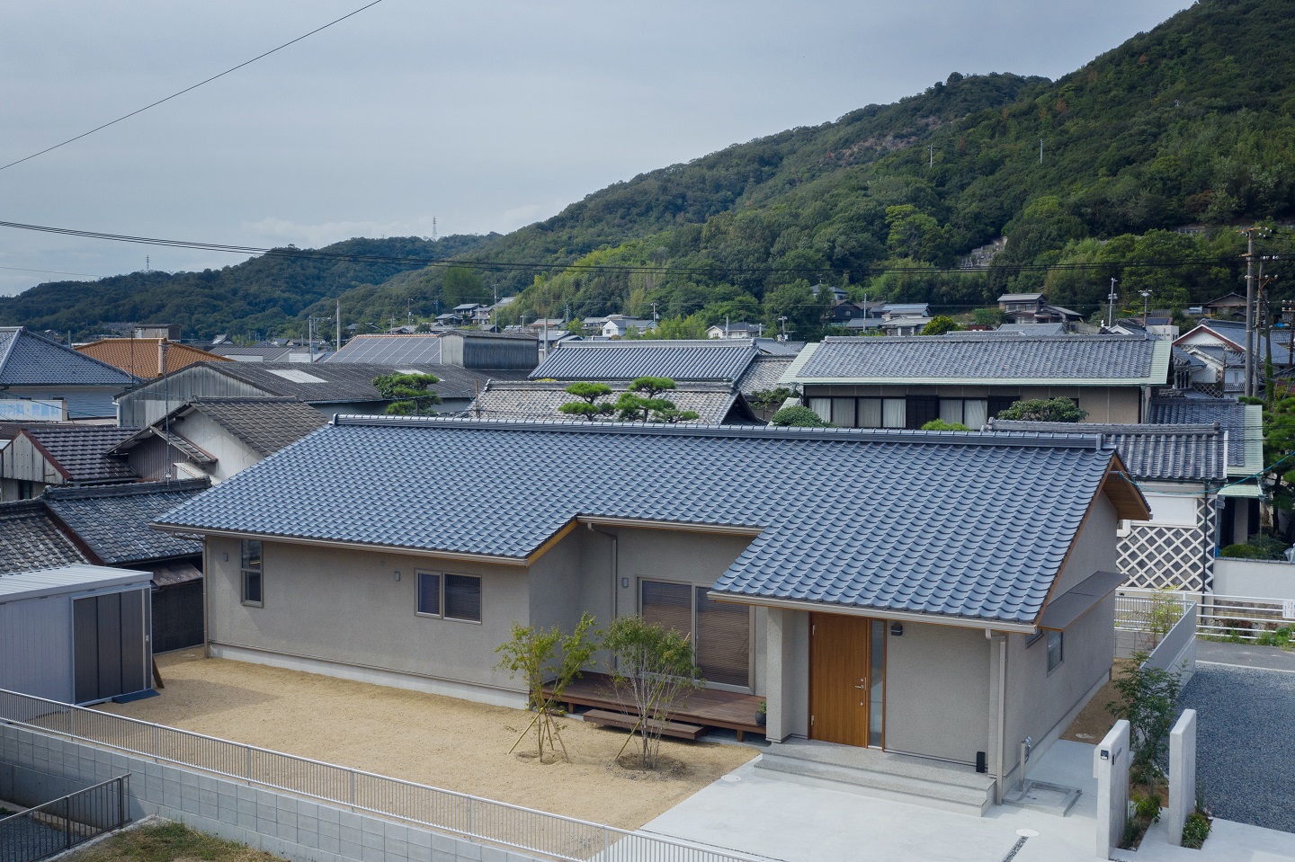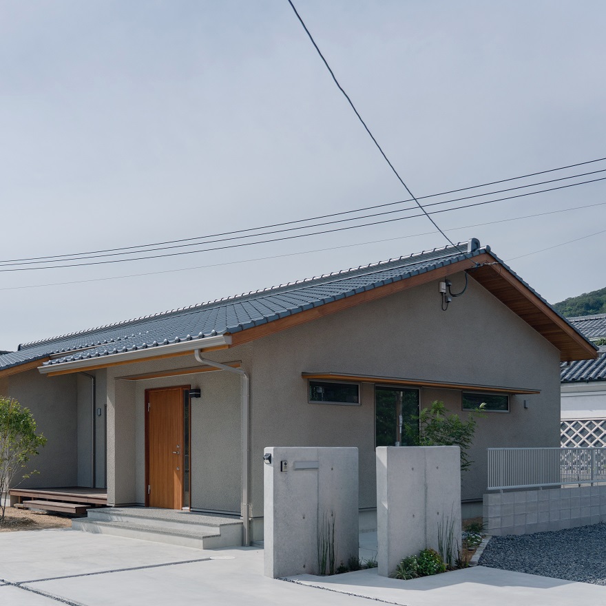 屋根の色を寒色にすることで、落ち着いた雰囲気のある上品な平屋になっています。