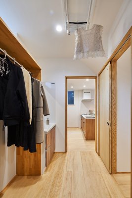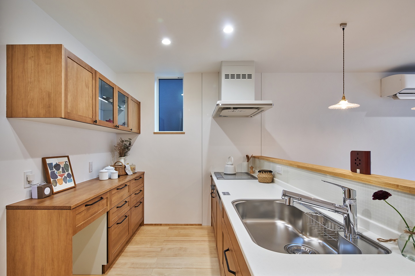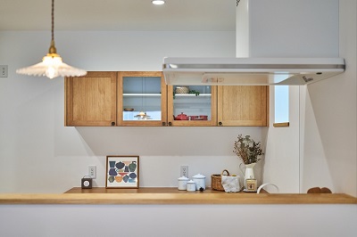 動線だけではなく、オリジナルの木製キッチンも取り入れ、収納も充実、毎日の家事に楽しさが見いだせる住まいです。