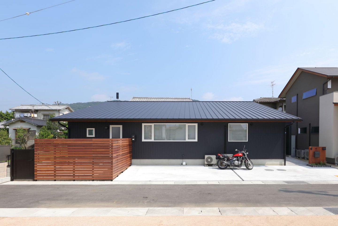 黒のガルバリウムが特徴的なデザイン性の高い平屋