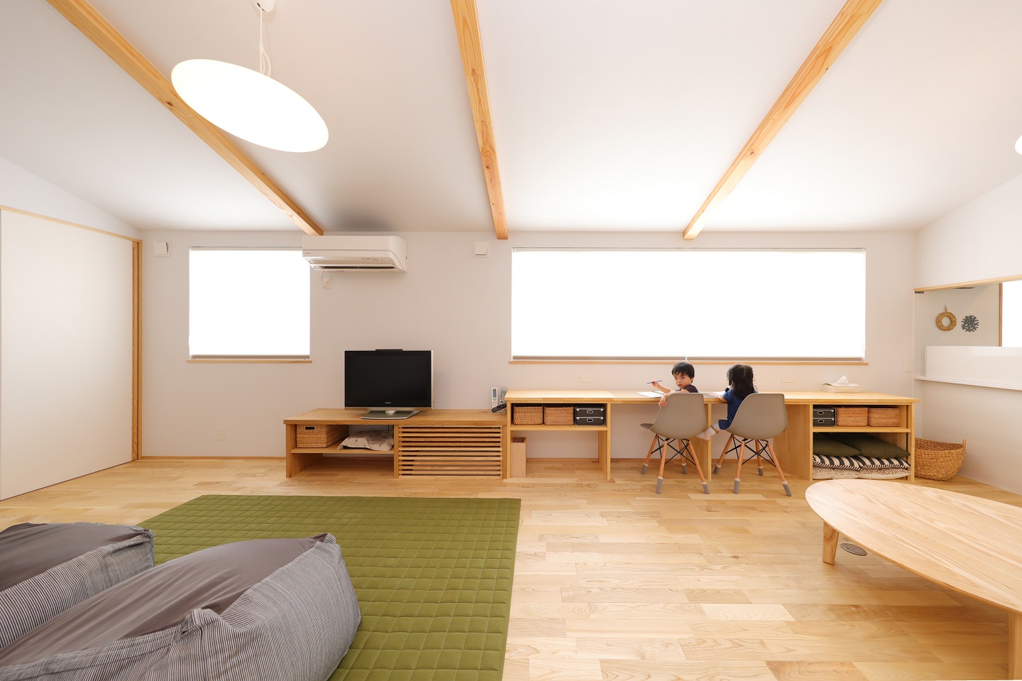 リビングに自然な形で子供たちの勉強スペースを確保しました。