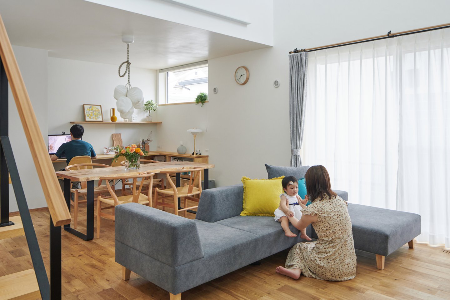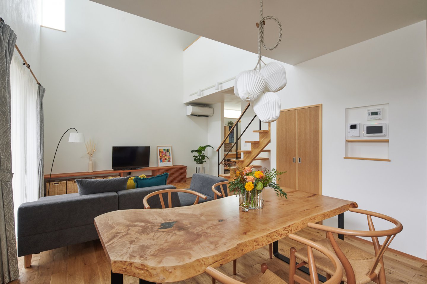 北欧家具がまるごと自然素材の家にマッチし、暖かみのある雰囲気が広がります。 -