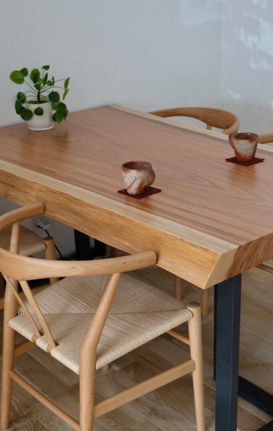 たそがれの時を楽しむ良質な暮らしを提案し、無垢材の爽やかな香りと共に、造作の家具が空間に調和しています。