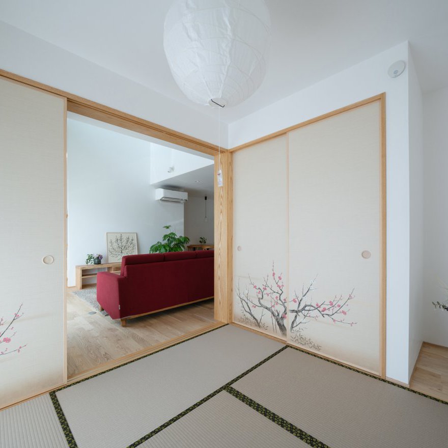 淡い色合いの桜で彩られた襖と無垢の柱で趣があり、日々の疲れを優しく癒してくれます。