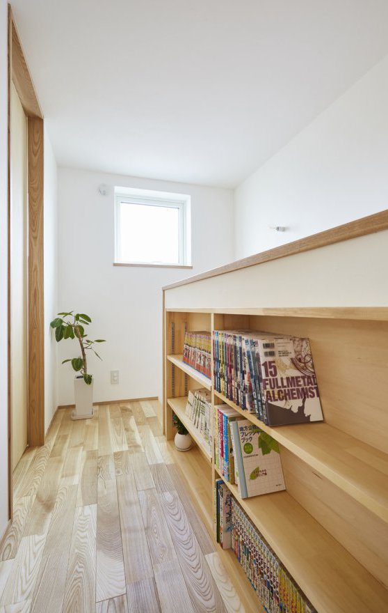 2階ホールには、家族と共有したい本を置く造作の本棚があり、会話が弾む楽しい時間が訪れます。