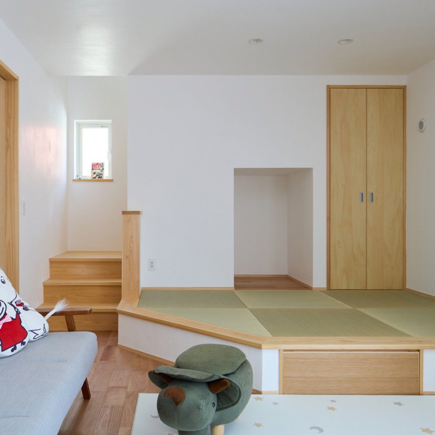 収納力抜群!小上がりの畳コーナーが癒しを提供するリビング