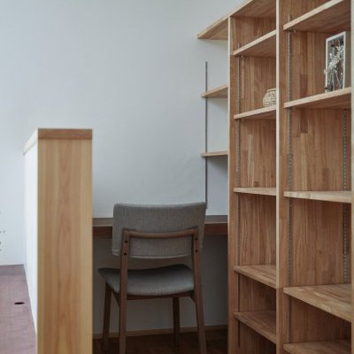 リビング横には奥様のためのワークスペースがあり、集中できるおこもり感を大切にデザインされています。