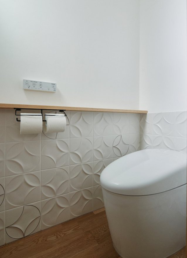 お施主様のこだわりが詰まった水回りのタイルは、デザイン性と実用性を兼ね備えたものです。
