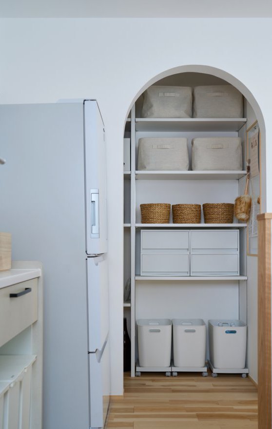 キッチンとパントリーだけでも収納がぐっと増えて、お皿や食材もすぐに取り出せるので、料理もとても快適になりました。