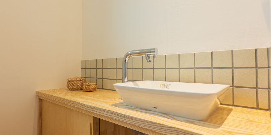 シンプルなものが好きで、タイルは落ち着いた色をセレクトしました。